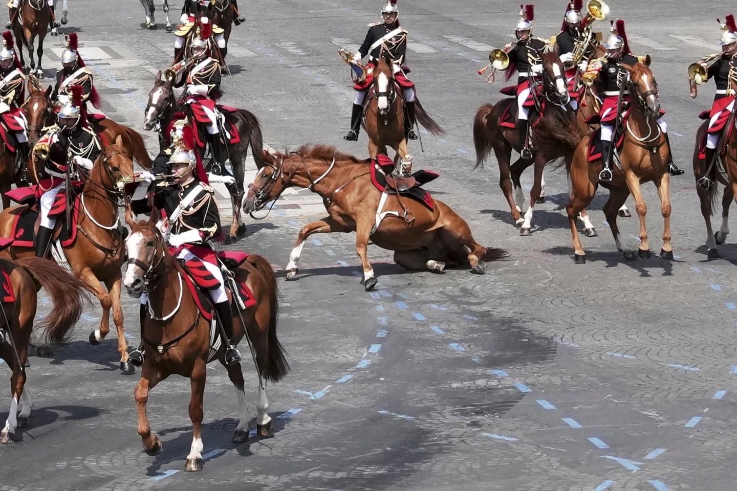 Στην παρέλαση για την εθνική εορτή της Γαλλίας, συμμετείχαν πολεμικά αεροσκάφη, τα οποία ίπταντο πάνω από το Παρίσι, στρατιώτες που κρατούσαν τσεκούρια, ένα φαντασμαγορικό σόου από drones πάνω από τον Πύργο του Άιφελ και πυροτεχνήματα σχεδόν σε κάθε γαλλική πόλη.