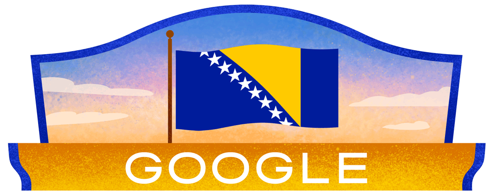 Η Βοσνία-Ερζεγοβίνη υιοθέτησε τη σημαία που κυματίζει στο σημερινό Doodle το 1995. Εμφανίζει ένα μπλε φόντο με ένα κίτρινο τρίγωνο και λευκά αστέρια που εκτείνονται έξω από τη σημαία, υπονοώντας ότι τα αστέρια συνεχίζουν.