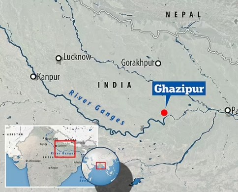Το βίντεο δείχνει τη στιγμή που πλήθος ανθρώπων μαζεύτηκαν γύρω από τον άνδρα, που ονομάζεται Γκούλου Γουατζουάρι, καθώς άνοιξε το κουτί, προτού πάρει το παιδί στην αγκαλιά του στις όχθες του ποταμού στην πόλη Γκαζιπούρ, στο βόρειο κράτος του Ουτάρ Πραντές, στις 14 Ιουνίου.
