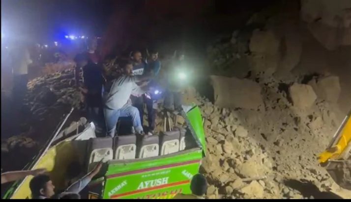 A bus got hit by a massive landslide. Around 25 to 30 people were on board. 15 have lost their lives, and several are still trapped under the debris.