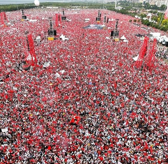 Το βασικό μήνυμα του Μουχαρέμ Ιντζέ στην τελευταία ομιλία σήμερα ήταν το «Ερντογάν τελείωσες!», αντιδρώντας βέβαια στη διακοπή της ομιλίας του από 3 κανάλια εθνικής εμβέλειας, προκειμένου να μεταδώσουν την ομιλία του Ερντογάν την ίδια ώρα. «Θα μηνύσω τις τηλεοράσεις που έκοψαν τη δική μου ομιλία για να μεταδώσουν του Ερντογάν. Ερντογάν τελείωσες!», είπε χαρακτηριστικά ο Μουχαρέμ Ιντζέ.