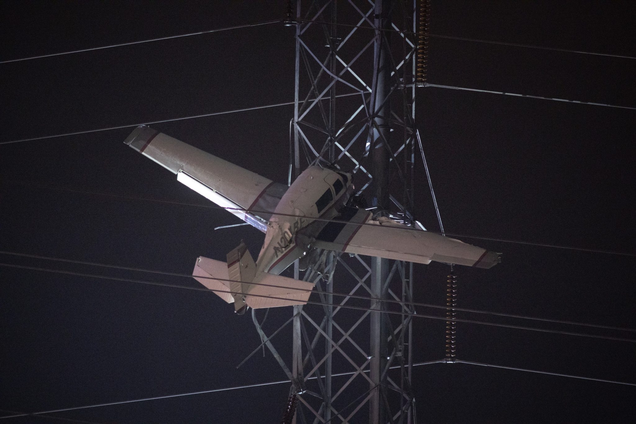 A small plane rests on live power lines after crashing, Sunday, Nov. 27, 2022, in Montgomery Village, a northern suburb of Gaithersburg, Md. (AP Photo/Tom Brenner) pic.twitter.com/kO9YNrVlCF