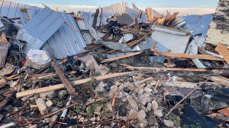 Ενδέχεται η πόλη να χτυπήθηκε ως ακόμη και από τρεις ανεμοστρόβιλους, πρόσθεσε ο τηλεοπτικός σταθμός.