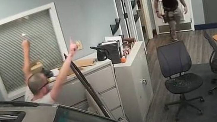 Αμέσως μετά ο ίδιος οδήγησε προς το αστυνομικό τμήμα της κοινότητας Independence Township, το οποίο ήταν το πλησιέστερο στο δρόμο του και «μπούκαρε» με το όχημα του στο τμήμα, προκαλώντας σοβαρές ζημιές.