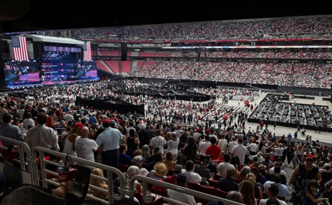 A LONG LINE HAS FORMED outside of State Farm Stadium in Arizona ahead of Sunday’s funeral for Charlie Kirk.