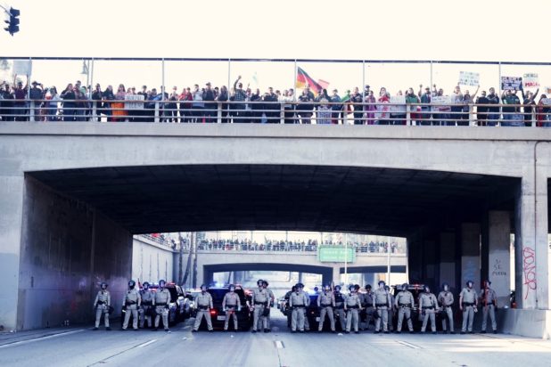 Καθώς η πορεία εξελισσόταν, οι διαδηλωτές μπλόκαραν όλες τις λωρίδες του αυτοκινητόδρομου U.S. 101, προκαλώντας σοβαρά κυκλοφοριακά προβλήματα και καθυστερήσεις στις γύρω περιοχές.