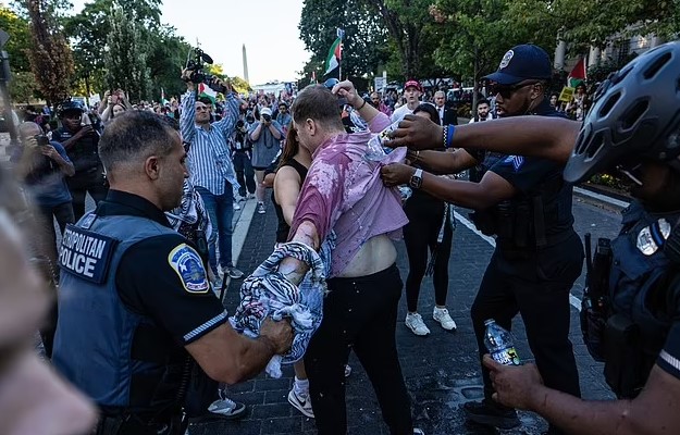Στην Ουάσιγκτον, πάνω από χίλιοι εξοργισμένοι διαδηλωτές που ανέμιζαν σημαίες της Παλαιστίνης και του Λιβάνου συγκεντρώθηκαν μπροστά στον Λευκό Οίκο, πολλοί για να απαιτήσουν να τερματιστεί η στρατιωτική βοήθεια των ΗΠΑ στον στρατηγικό τους σύμμαχο στη Μέση Ανατολή, το Ισραήλ.