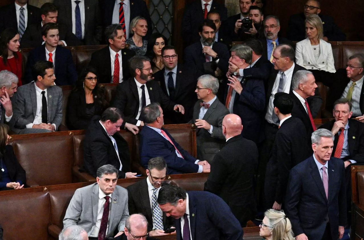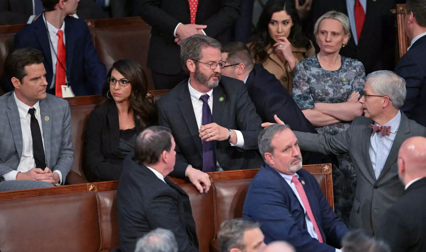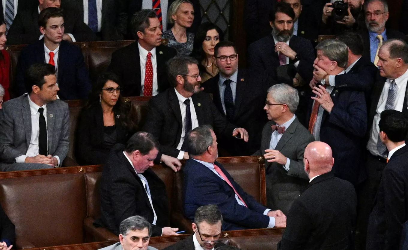 Αυτό που, ωστόσο, δεν περίμεναν ποτέ να δουν ήταν το κεφαλοκλείδωμα που χρειάστηκε να γίνει στον Ρεπουμπλικανό βουλευτή από την Αλαμπάμα, Μάικ Ρότζερς, προκειμένου να μην ορμήσει στον συνάδελφό του από την Φλόριντα, Ματ Γκετζ, επειδή εκτίμησε ότι κάνει παζάρι σε βάρος του προκειμένου να επιτρέψει την εκλογή Μακάρθι.