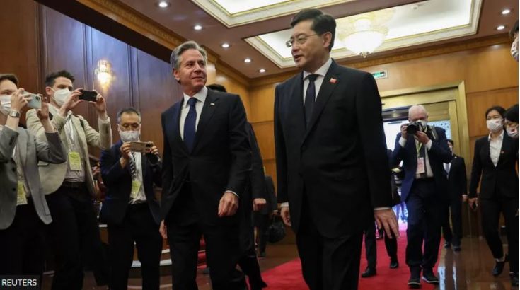 Η διήμερη αυτή επίσκεψη είναι το πρώτο ταξίδι Αμερικανού υπουργού Εξωτερικών σε κινεζικό έδαφος τα τελευταία σχεδόν πέντε χρόνια. Ο Μπλίνκεν συνάντησε τον Κινέζο ομόλογό του Τσι Γκανγκ σε μια κρατική έπαυλη πλούσια διακοσμημένη που βρίσκεται στους παμπάλαιους κήπους Ντιαογιουτάι στο Πεκίνο, όπου οι Κινέζοι οικοδεσπότες του επρόκειτο στη συνέχεια να παραθέσουν γεύμα.