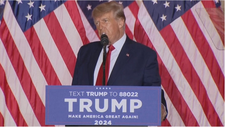 Ο Ρεπουμπλικάνος πρώην πρόεδρος επισημοποίησε την υποψηφιότητά του, την τρίτη κατά σειρά, με έγγραφο που επιδόθηκε στην ομοσπονδιακή εκλογική επιτροπή (Federal Election Commission, FEC), μερικά λεπτά προτού κάνει τη «μεγάλη ανακοίνωση» που είχε προαναγγείλει μπροστά στους συγκεντρωμένους οπαδούς του που ανυπομονούσαν στην πολυτελή κατοικία του στο Μαρ-α-Λάγκο, στη Φλόριντα.