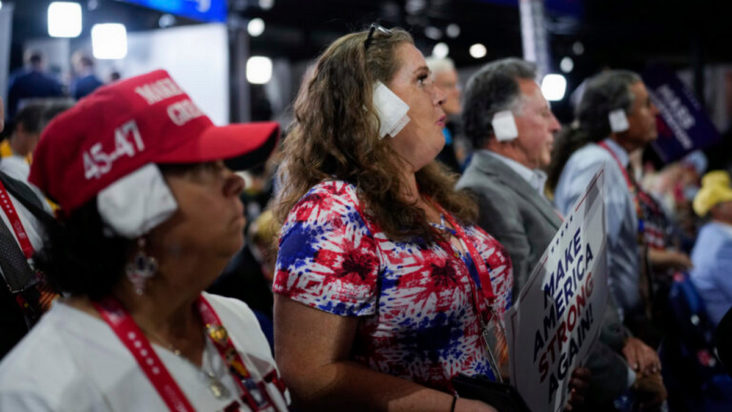 Οπαδοί του Τραμπ εμφανίστηκαν με επίδεσμο στο δεξί αυτί στο Συνέδριο των Ρεπουμπλικανών