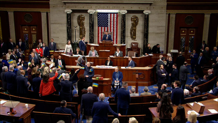Οι Δημοκρατικοί επευφημούσαν και ανέμιζαν ουκρανικές σημαίες κατά τη διάρκεια της ψηφοφορίας. Από το πακέτο των 95 δισεκατομμυρίων δολαρίων προβλέπονται 61 δισεκατομμύρια δολάρια μόνο για την Ουκρανία «και άλλους» εταίρους στην περιοχή για να πολεμήσουν τη Ρωσία.