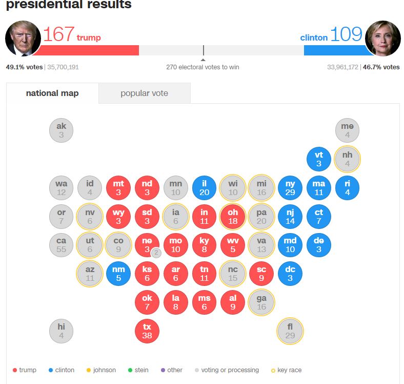 Πλέον, η υποψήφια των Δημοκρατικών δεν πρέπει να χάσει το Μίσιγκαν όπου προηγείται με μικρή διαφορά ο Ντόναλντ Τραμπ (48,6% – 46,4%), ενώ διατηρεί ελπίδες και στη Φλόριντα.