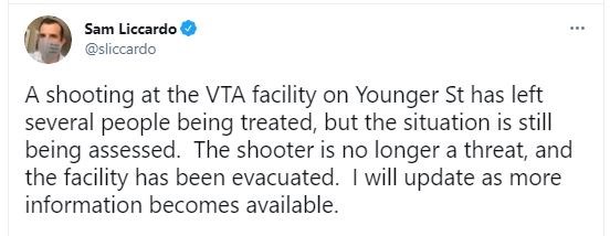 Breaking: Reports indicate that there are 6-7 fatalities after a shooting at VTA light rail yard in San Jose, California. The shooter reportedly committed suicide. (Via @lenKPIX) pic.twitter.com/aFWIoWdQti