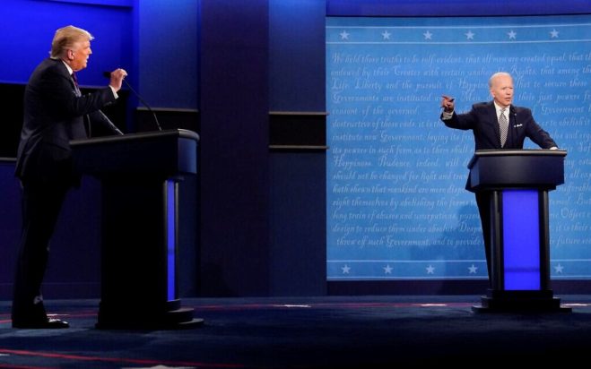 Με ρίψη κέρματος καθορίστηκαν οι θέσεις στο βάθρο και η σειρά των τελικών δηλώσεων. Σύμφωνα με πληροφορίες, η ομάδα του Μπάιντεν θα βρίσκεται στο βάθρο στα δεξιά, ενώ η ομάδα του Τραμπ θα κάνει την τελική δήλωση στη λήξη της βραδιάς.