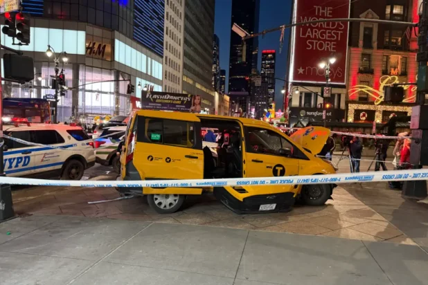 A taxi cab slammed into a Christmas Day crowd outside Macy’s store in New York.