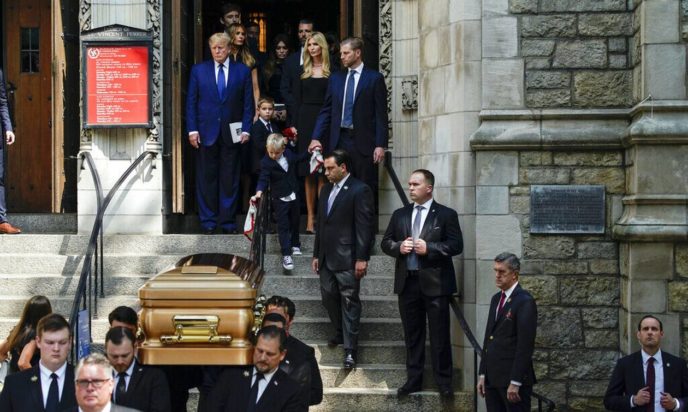 Παρόντες στην κηδεία ήταν ο Ντόναλντ Τραμπ με τη σύζυγό του Μελάνια, καθώς και τα τρία παιδιά της εκλιπούσης με τον πρώην πρόεδρο των ΗΠΑ: η Ιβάνκα, ο Ντόναλντ Τζούνιορ και ο Έρικ.