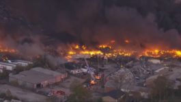 Αεροφωτογραφίες τοπικών τηλεοπτικών δικτύων έδειχναν επίσης, λίγο μετά τη συντριβή, μεγάλη φωτιά να εκτείνεται σε αρκετές εκατοντάδες μέτρα κατά μήκος μιας ζώνης αποθηκών, υπόστεγων και χώρων στάθμευσης με τους φάρους των ομάδων διάσωσης να είναι κοντά.