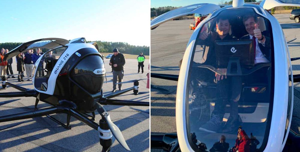 Ιπτάμενο ταξί χωρίς πιλότο έκανε την πρώτη δοκιμαστική πτήση στη Βόρεια Καρολίνα, παρουσία αξιωματούχων της πολιτείας των ΗΠΑ και περίπου 100 θεατών.Την επίδειξη πτήσης του αυτόνομου αεροσκάφους EHang 216 παρακολούθησαν ο κυβερνήτης Ρόι Κούπερ και εκπρόσωποι των υπηρεσιών του υπουργείου Μεταφορών των ΗΠΑ.Το διθέσιο drone έχει σχεδιαστεί για τη μεταφορά εμπορευμάτων και επιβατών.
