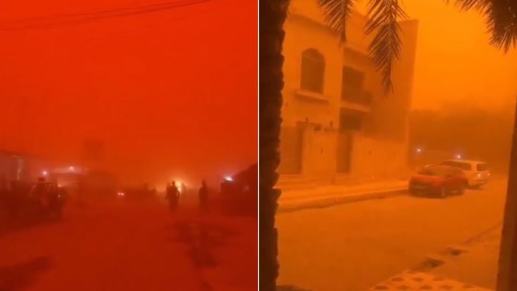 WATCH 🚨 Massive sandstorm blankets Iraq in apocalyptic orange, dimming the skies and reducing visibility to almost nothing pic.twitter.com/sI7jfm0Krd