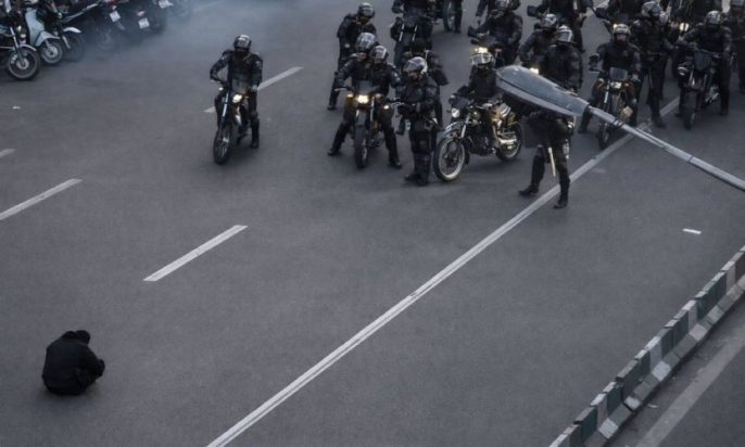 Ένα βίντεο από το Ιράν, που δείχνει έναν άνδρα καθισμένο στη μέση ενός δρόμου στην Τεχεράνη, έχοντας απέναντι του αστυνομικούς με μοτοσικλέτες, κατά τη διάρκεια των διαδηλώσεων των τελευταίων ημερών, αναμεταδίδεται σε ιστοτόπους κοινωνικής δικτύωσης και πολλοί από τους χρήστες βλέπουν σε αυτό μια «ιρανική Τιενανμέν».