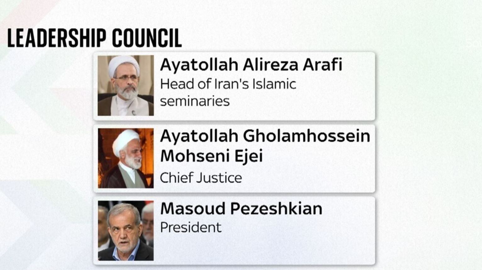 Ο Αγιατολάχ Αλί Χαμενεΐ σκοτώθηκε σε αμερικανο-ισραηλινές επιδρομές την πρώτη ημέρα του πολέμου το περασμένο Σάββατο. Ένα τριμελές συμβούλιο ηγεσίας σχηματίστηκε για να κυβερνήσει τη χώρα σε προσωρινή βάση αμέσως μετά τον θάνατο του ανώτατου ηγέτη.
