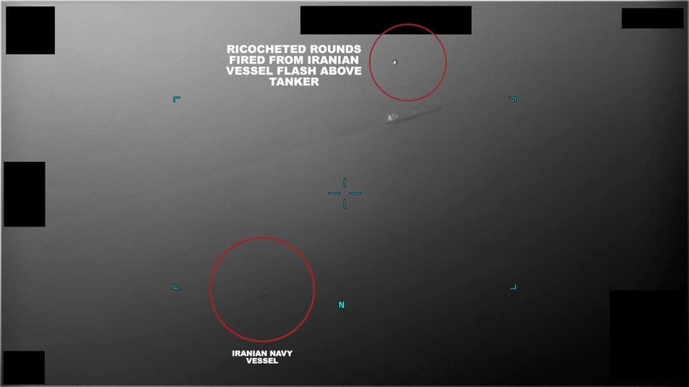 Τo αμερικανικό Πολεμικό Ναυτικό ανακοίνωσε πως έστειλε το πυραυλοφόρο αντιτορπιλικό USS McFaul για να απαντήσει σε έκκληση για βοήθεια από το Richmond Voyager στα ανοικτά της ακτής του Ομάν, στα διεθνή ύδατα. Πρόσθεσε πως οι ιρανικές αρχές ζήτησαν από το δεξαμενόπλοιο να σταματήσει και άνοιξαν πυρ, όμως το ιρανικό πολεμικό σκάφος έφυγε όταν έφθασε το McFaul.