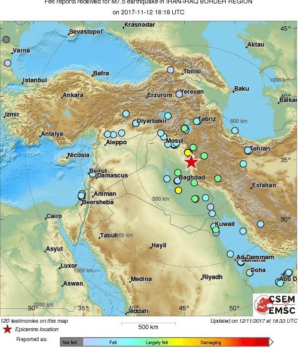 Στη Νταρμπανταχάν του Ιράκ και στην επαρχία Ιλάμ του Ιράν οι αρχές προέτρεψαν τους κατοίκους να περάσουν τη νύχτα έξω από τα σπίτια τους προληπτικά.