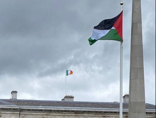 The Palestinian Flag flying proudly with our National Flag at the Dáil as Ireland officially recognises the state of Palestine today 🇵🇸🇮🇪 pic.twitter.com/1nBqrPQSe8