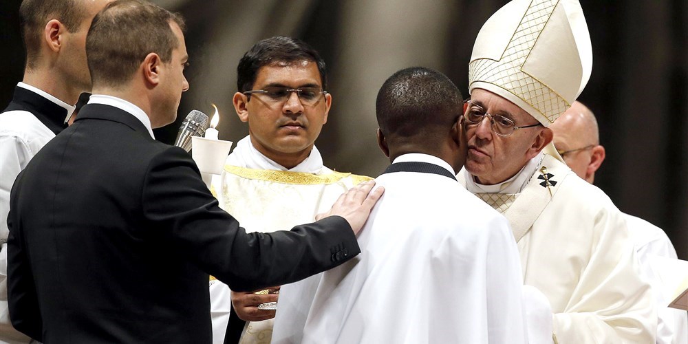 Ο πάπας Φραγκίσκος πρωτοστάτησε χθες σε μια λειτουργία για το Πάσχα, βαπτίζοντας οκτώ ενήλικες, μεταξύ αυτών και έναν Νιγηριανό πρώην παράτυπο μετανάστη, ο οποίος έγινε ήρωας όταν αφόπλισε έναν Ιταλό ληστή που κρατούσε έναν μπαλτά.