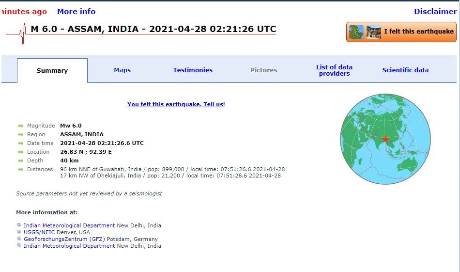 Η εθνική υπηρεσία αντιμετώπισης καταστροφών της Ινδίας έχει λάβει αναφορές για θύματα και σοβαρές υλικές ζημιές εξαιτίας του σεισμού, είπε στέλεχός της υπό τον όρο να μην κατονομαστεί.