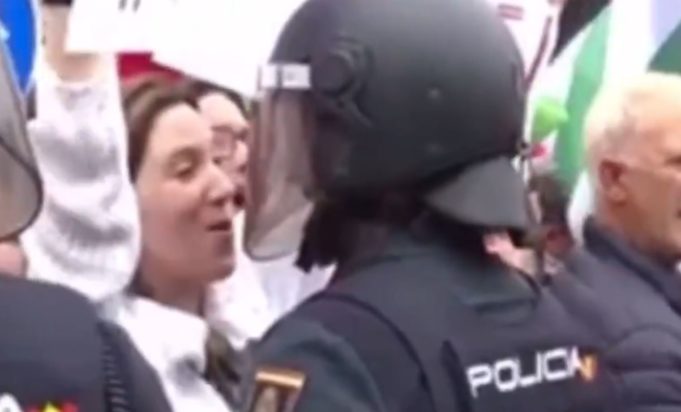 Το «φλερτ» ανάμεσα σε μια διαδηλώτρια και έναν αστυνομικό, έγινε το πιο viral περιστατικό σε πρόσφατη πορεία υπέρ της Παλαιστίνης, στην Ισπανία, προκαλώντας καταιγισμό αντιδράσεων στα social media.