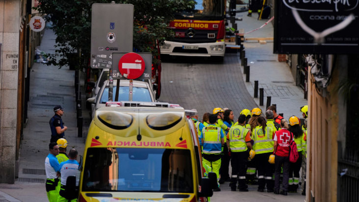 Το δυστύχημα σημειώθηκε στο κέντρο της Μαδρίτης, πολύ κοντά στην Πλάθα Μαγιόρ, λίγο μετά τις 13:30 (τοπική ώρα) και προκάλεσε περίπου δέκα τραυματισμούς, πέρα από τους δύο θανάτους και τους δύο αγνοούμενους.