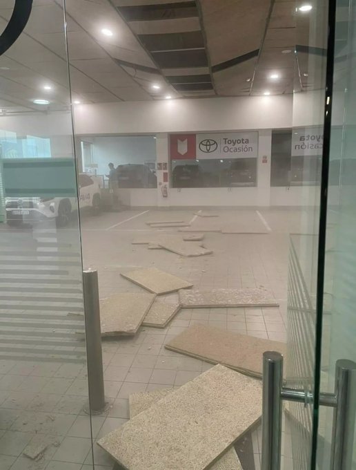 Επίσης κατέρρευσε τμήμα της ψευδοροφής σε έκθεση αυτοκινήτων, στο Ουερκάλ ντε Αλμερία.