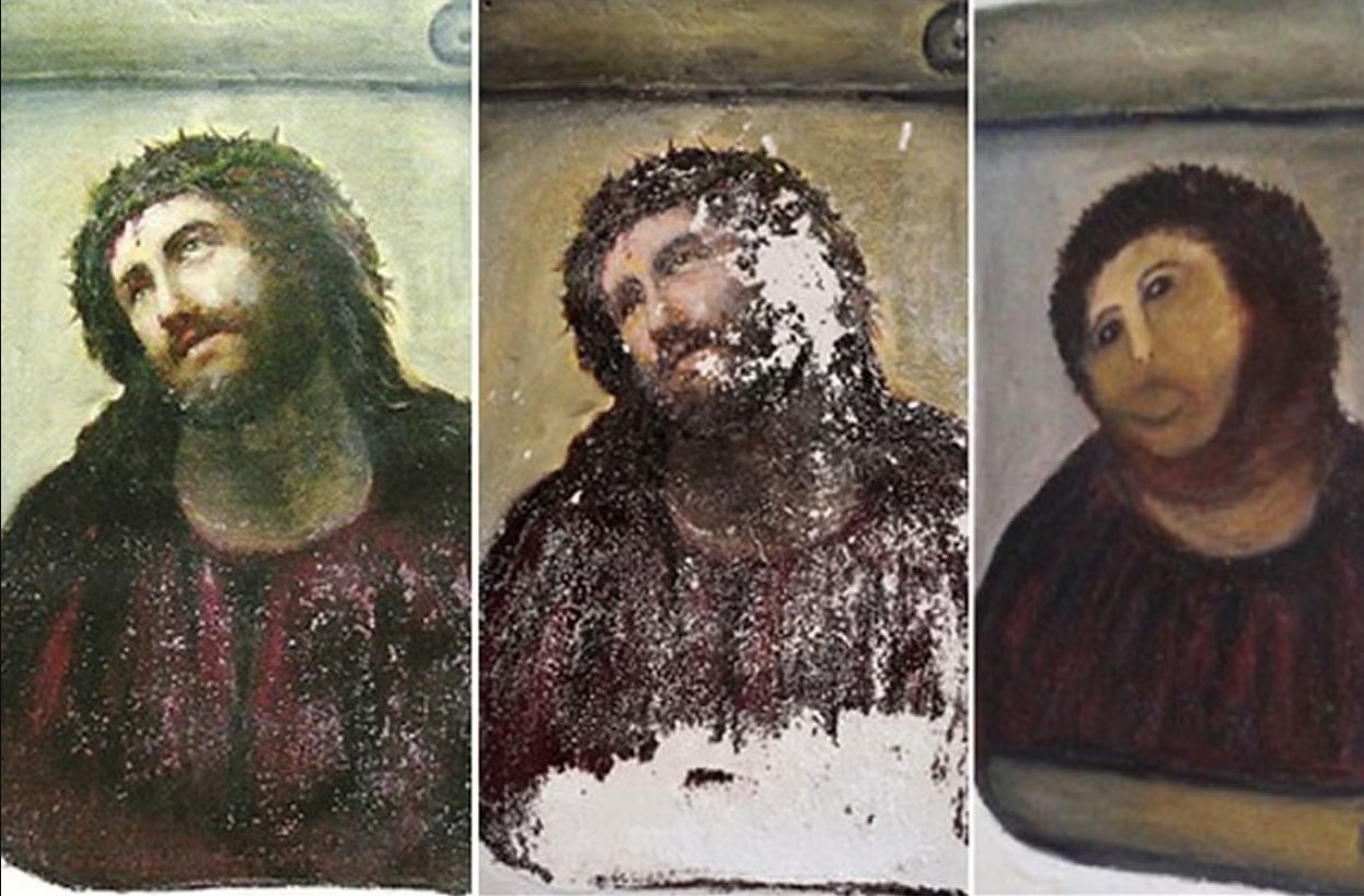 Τον Αύγουστο του 2012 παρουσιάστηκε η περίφημη «αποκατάσταση» της εικόνας «Ιδού ο Άνθρωπος» στον Ναό του Ελέους της κοινότητας Μπόρχα. Επειδή το έργο ήταν σε πολύ κακή κατάσταση, η ενορίτισσα Σεσίλια, έχοντας τις καλύτερες προθέσεις, αποφάσισε να το… ξαναζωγραφίσει από πάνω, υπενθύμισε το ίδρυμα που διαχειρίζεται το ιερό, όπου εκτίθεται μέχρι και σήμερα η εικόνα.