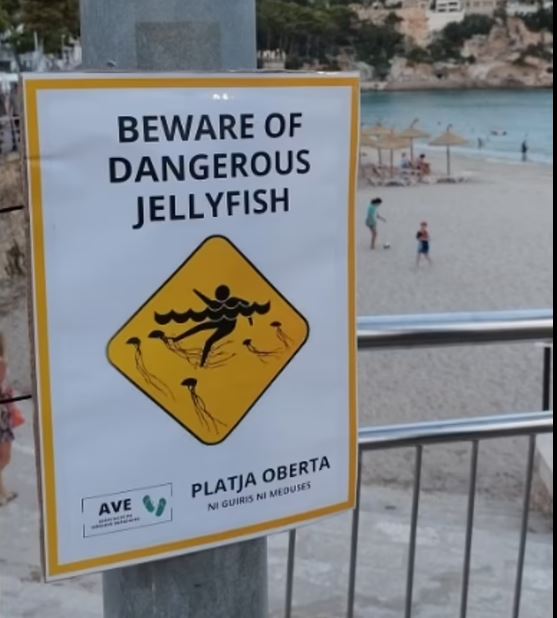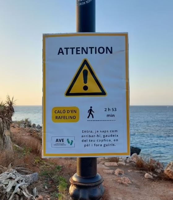 Σύμφωνα με τη Sun, η πινακίδα που προειδοποιεί στα Αγγλικά, ότι υπάρχουν τσούχτρες στο νερό, στα καταλανικά γράφει «Ανοιχτή παραλία. Όχι στις μέδουσες όχι και στους ξένους». Και η πινακίδα που γράφει ότι πέφτουν βράχια, στα καταλανικά γράφει ότι δεν πέφτουν βράχια, και ότι ο κίνδυνος δεν είναι οι «κατολισθήσεις, αλλά ο «υπερπληθυσμός».  Οι πινακίδες τοποθετήθηκαν από την αντικαπιταλιστική ακτιβιστική ομάδα Caterva – η οποία επέκρινε τον αστέρα του τένις Ραφαέλ Ναδάλ επειδή έχει ένα εστιατόριο και μια τουριστική επιχείρηση στο νησί των Βαλεαρίδων, όπως και άλλους επιχειρηματίες  στην περιοχή.