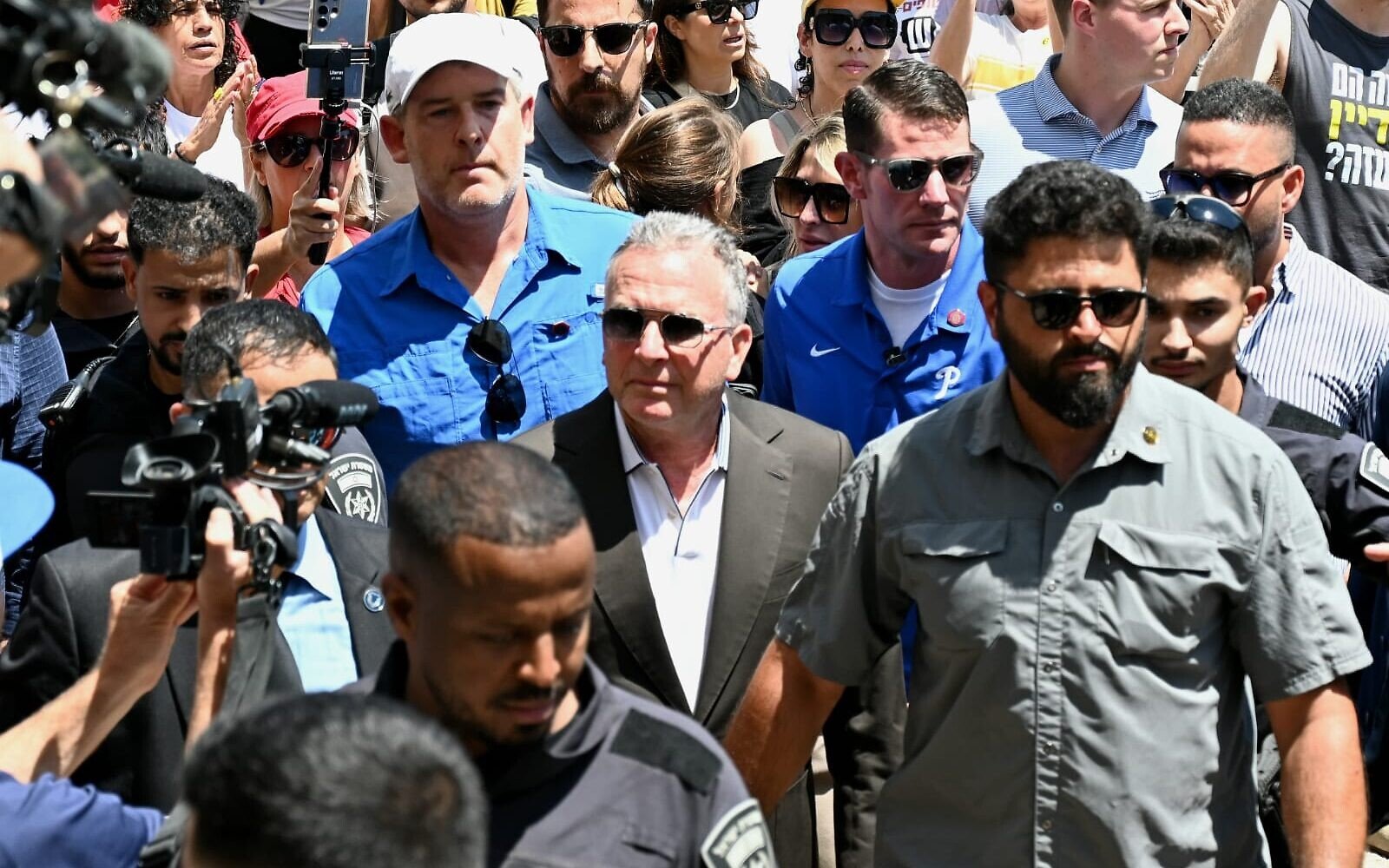 Περιστοιχισμένος από τους άνδρες ασφαλείας του, ο Γουίτκοφ έφθασε πεζή στην «πλατεία των ομήρων» στο Τελ Αβίβ, όπου είχαν συγκεντρωθεί συγγενείς των 49 ανθρώπων που παραμένουν στη Γάζα, ζωντανοί ή νεκροί, οι οποίοι απήχθηκαν την 7η Οκτωβρίου του 2023, κατά τη διάρκεια της επίθεσης της Χαμάς, σύμφωνα με πλάνα που δημοσιεύτηκαν στα μέσα κοινωνικής δικτύωσης και τα οποία πρόβαλαν τα ισραηλινά ΜΜΕ.