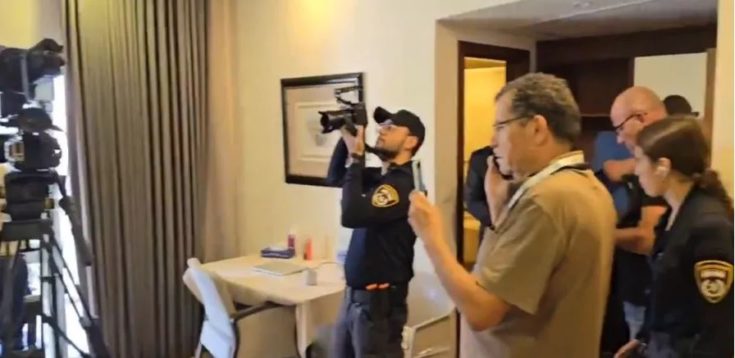Βίντεο που κυκλοφόρησαν στο διαδίκτυο δείχνουν αστυνομικούς με πολιτικά να αποσυναρμολογούν εξοπλισμό κάμερας σε ένα δωμάτιο ξενοδοχείου. Η πηγή του Al Jazeera δήλωσε πως το ξενοδοχείο βρίσκεται στην Ανατολική Ιερουσαλήμ.