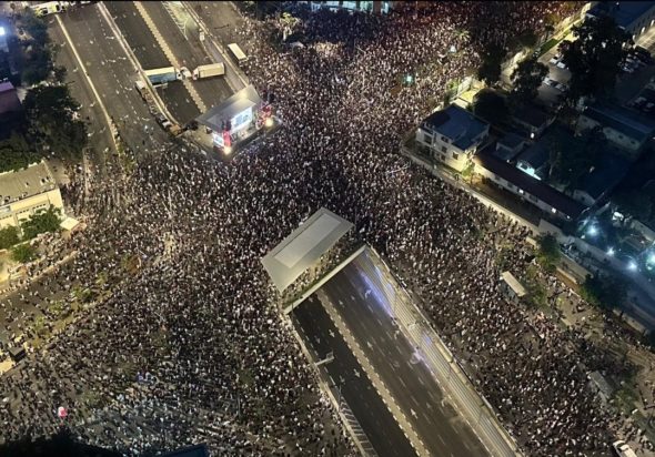 Δεκάδες χιλιάδες άνθρωποι διαδήλωσαν το βράδυ του Σαββάτου στο Τελ Αβίβ και σε άλλες πόλεις του Ισραήλ για να απαιτήσουν για ακόμη μια φορά να κλειστεί από την κυβέρνηση συμφωνία για την απελευθέρωση των ομήρων που εξακολουθεί να κρατά η Χαμάς στη Λωρίδα της Γάζας από την 7η Οκτωβρίου.