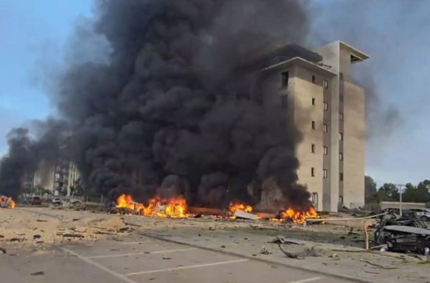 It appears that the Iranian ballistic missile may have impacting the road, just barely missing this block of high-rise apartment buildings in Beersheba. pic.twitter.com/oAQrKwJ31j