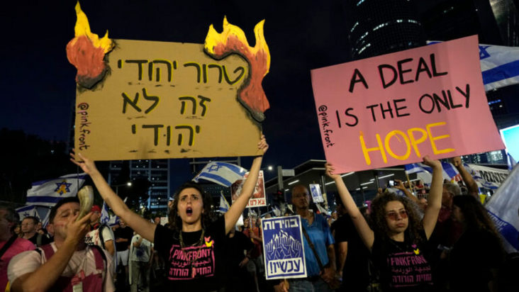 Πολλοί διαδηλωτές κατηγορούν τον Νετανιάχου ότι σαμποτάρει τη συμφωνία, υποκύπτοντας στις απαιτήσεις ακροδεξιών εταίρων του – από τους οποίους εξαρτάται η πολιτική του επιβίωση.