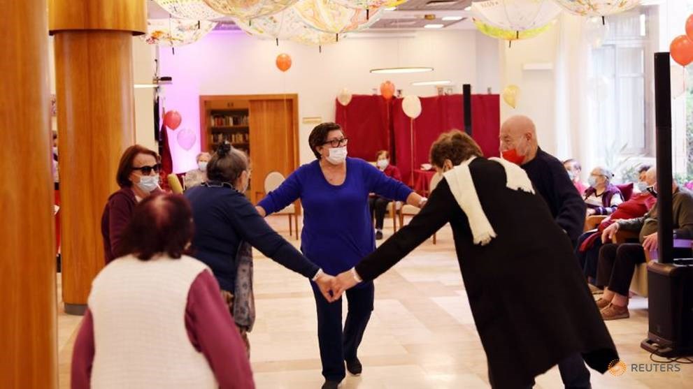 Στην εγκατάσταση υποβοηθούμενης διαβίωσης Λεβ Γκανίμ στην πόλη Νετάνια, οι ένοικοι, εξακολουθώντας να φορούν προστατευτικές μάσκες, έκαναν ένα χορευτικό πάρτι για να γιορτάσουν τον εμβολιασμό τους με τη δεύτερη και τελευταία δόση.