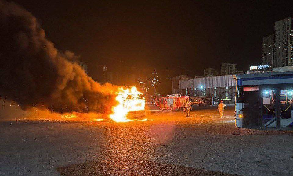 Πλάνα στα μέσα κοινωνικής δικτύωσης δείχνουν τουλάχιστον ένα λεωφορείο να φλέγεται σε χώρο στάθμευσης, με ένα μεγάλο σύννεφο καπνού να υψώνεται από πάνω.