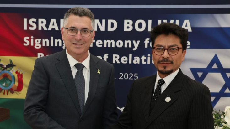 Το Ισραήλ και η Βολιβία επανέφεραν και επίσημα τις διπλωματικές σχέσεις τους, μετά από δύο χρόνια διακοπής που είχαν προκληθεί λόγω των συγκρούσεων στη Λωρίδα της Γάζας. Η τελετή για την επανέναρξη των σχέσεων πραγματοποιήθηκε στην πρεσβεία του Ισραήλ στις Ηνωμένες Πολιτείες, παρουσία των υπουργών Εξωτερικών των δύο χωρών.