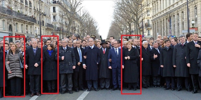 Η «HaMevaser» δημοσίευσε φωτογραφία με τους ηγέτες των  χωρών του κόσμου στην ιστορική πορεία αλληλεγγύης αλλά αφαίρεσε τις γυναίκες, δηλαδή την Άνγκελα Μέρκελ και τη δήμαρχο του Παρισιού.