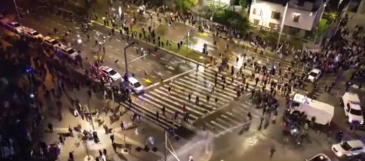 Χιλιάδες εξοργισμένοι διαδηλωτές, απαίτησαν την παραίτηση της κυβέρνησης Νετανιάχου. Τα κανόνια νερού και τα δακρυγόνα, πυροδότησαν ακόμα πιο σκληρές εικόνες. Διαδηλωτές έδωσαν μάχη σώμα με σώμα με την αστυνομία και δεκάδες τραυματίστηκαν. Πάνω από 20 άτομα συνελήφθησαν. Κάμερα κινητού καταγράφει έφιππο αστυνομικό να χτυπά με μαστίγιο διαδηλωτή στο κεφάλι.