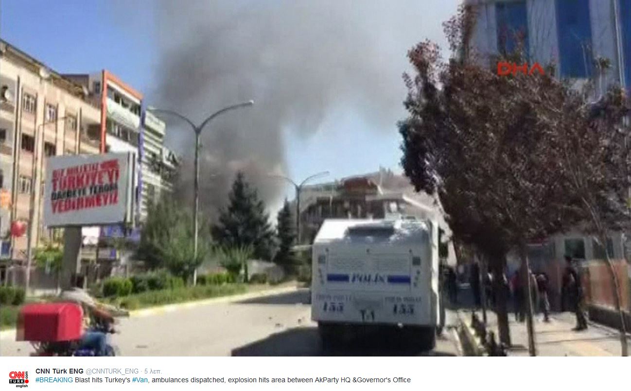 Ισχυρή έκρηξη σημειώθηκε στην πόλη Βαν της ανατολικής Τουρκίας κοντά στα τουρκο-ιρανικά σύνορα σήμερα, πρώτη ημέρα της μουσουλμανικής γιορτής Έιντ αλ Άντχα, μεταδίδει το πρακτορείο ειδήσεων Dogan.