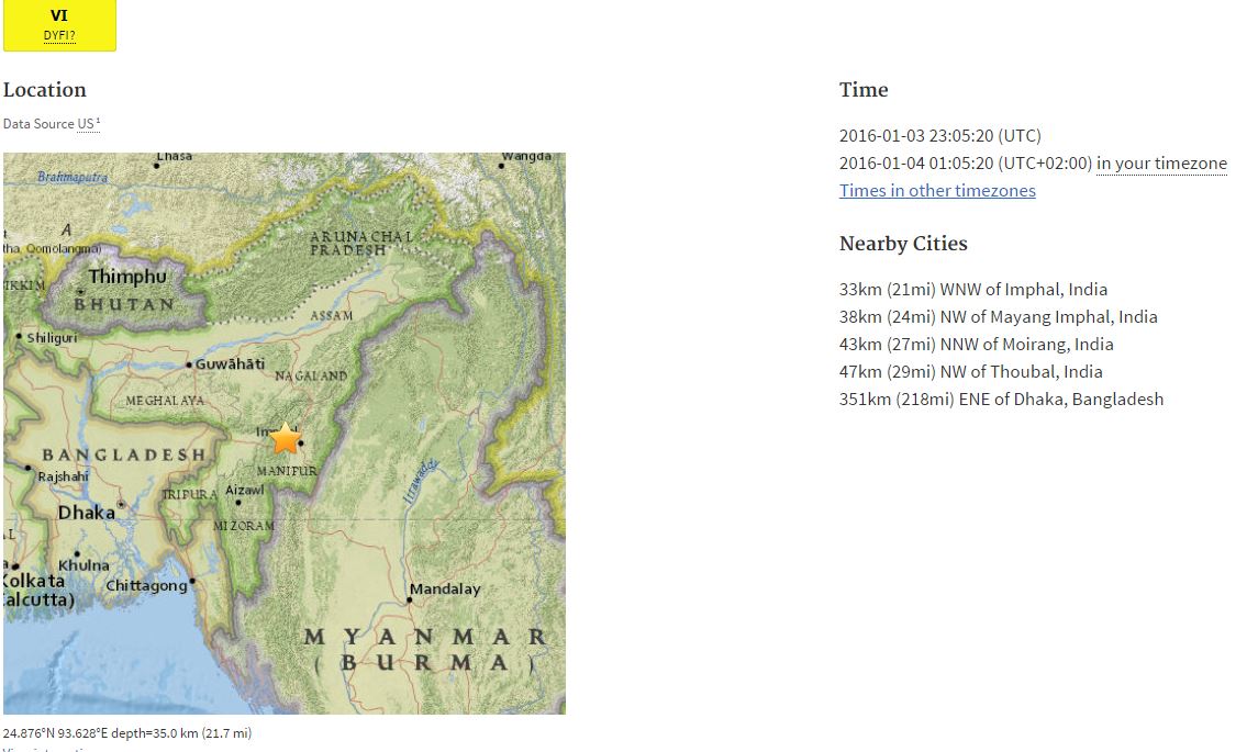Ο σεισμός, με εστιακό βάθος 57 χιλιόμετρα, σημειώθηκε στις 4:35 π.μ τοπική ώρα και είχε επίκεντρο 30 χιλιόμετρα δυτικά του Ιμπχάλ, είπε το Αμερικανικό Γεωλογικό Ινστιτούτο (USGS).