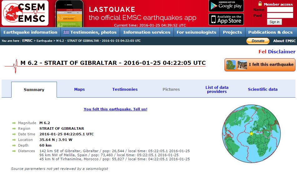 Σύμφωνα με το Γαλλικό Πρακτορείο, το οποίο επικαλείται και αυτό το USGS, ο σεισμός ήταν 6,1 βαθμών και σημειώθηκε νωρίς σήμερα το πρωί στη Μεσόγειο μεταξύ του Μαρόκου και της Ισπανίας.