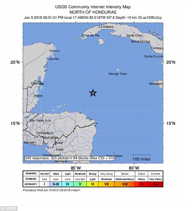 Σύμφωνα με το USGS ο σεισμός, που αρχικά εκτιμήθηκε ότι ήταν ισχύος 7,8 βαθμών, σημειώθηκε βόρεια των ακτών της Ονδούρας. Είχε επίκεντρο μια περιοχή 202 χλμ. βορειοανατολικά της πόλης Μπάρα Πατούκα της Ονδούρας και περίπου 307 χλμ. νοτιοδυτικά του Τζορτζ Τάουν των Νήσων Κέιμαν. Σημειώθηκε σε πολύ χαμηλό εστιακό βάθος, 10 χλμ., κάτι που μπορεί να τον κάνει ακόμη πιο καταστροφικό.